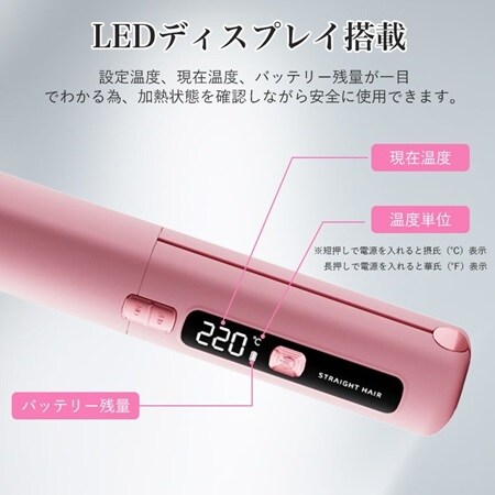 LEDディスプレイで温度を一目で確認でき、約62秒で160℃に到達するスピード加熱仕様。忙しい朝でもスムーズにスタイリングが完了する。