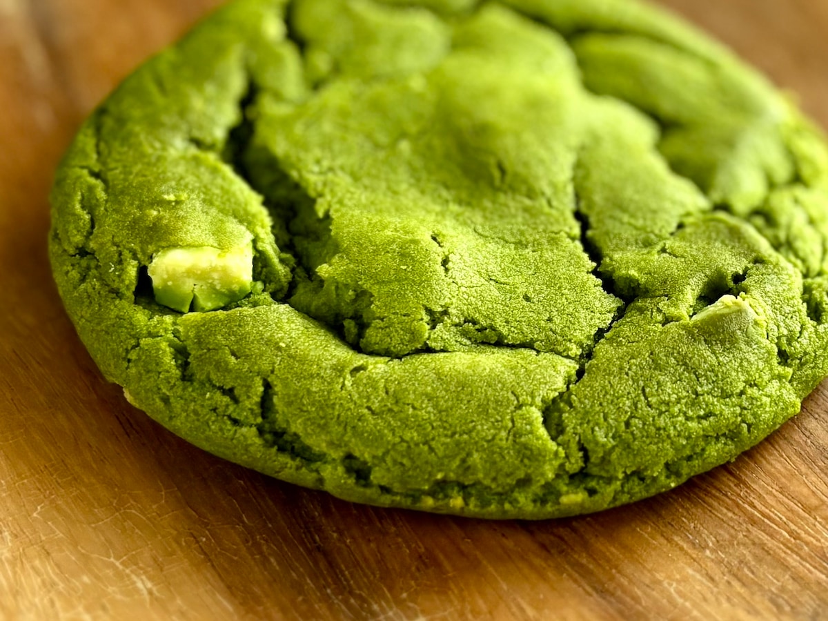 開封してみると、かなり濃い鮮やかな緑色。見るからに抹茶感が強そうです。サイズも大きく、手の平くらいはあります。