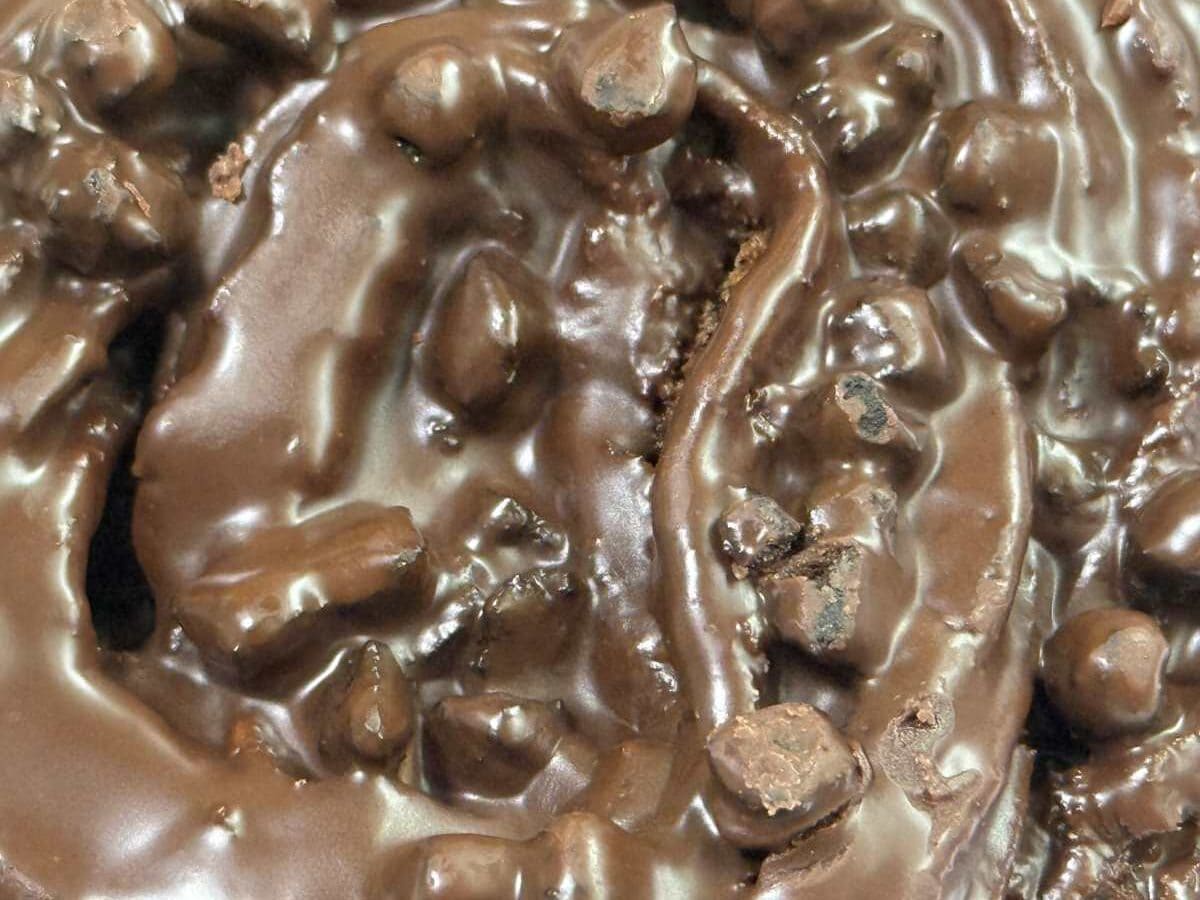 ココア生地のオールドファッションドーナツに、たっぷりのミルクチョコレートと、ブラックサンダーに欠かせないクッキーがちりばめられています。