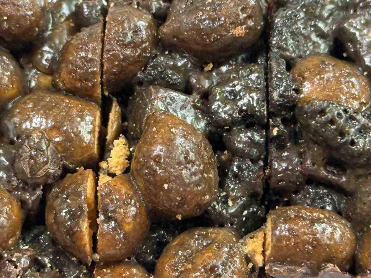 ブラックサンダーに使用しているココアクッキーとビスケットクラムの配合を過去販売商品より増量し、生地もキャラメルも黒くすることでブラックサンダーのような見た目を再現。過去販売商品よりザクザク食感もアップしている模様!