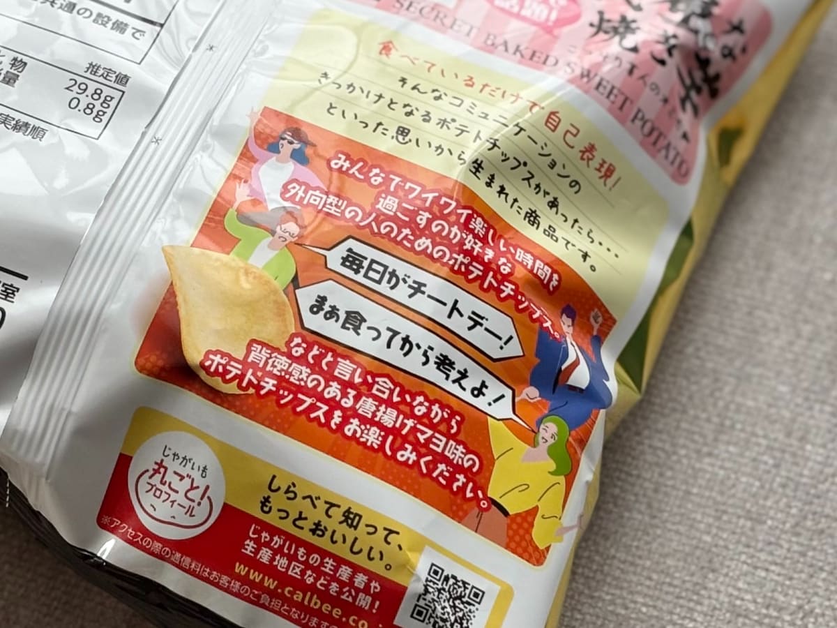 人気インフルエンサーと共同開発したポテトチップス。みんなでワイワイ楽しく過ごすのが好きな外向型の人をターゲットに、背徳感のある「唐揚げマヨ味」に仕上げた商品です。