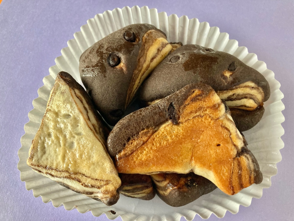 断面を見てみましたが、チョコが折り込まれているのがわかりますね。