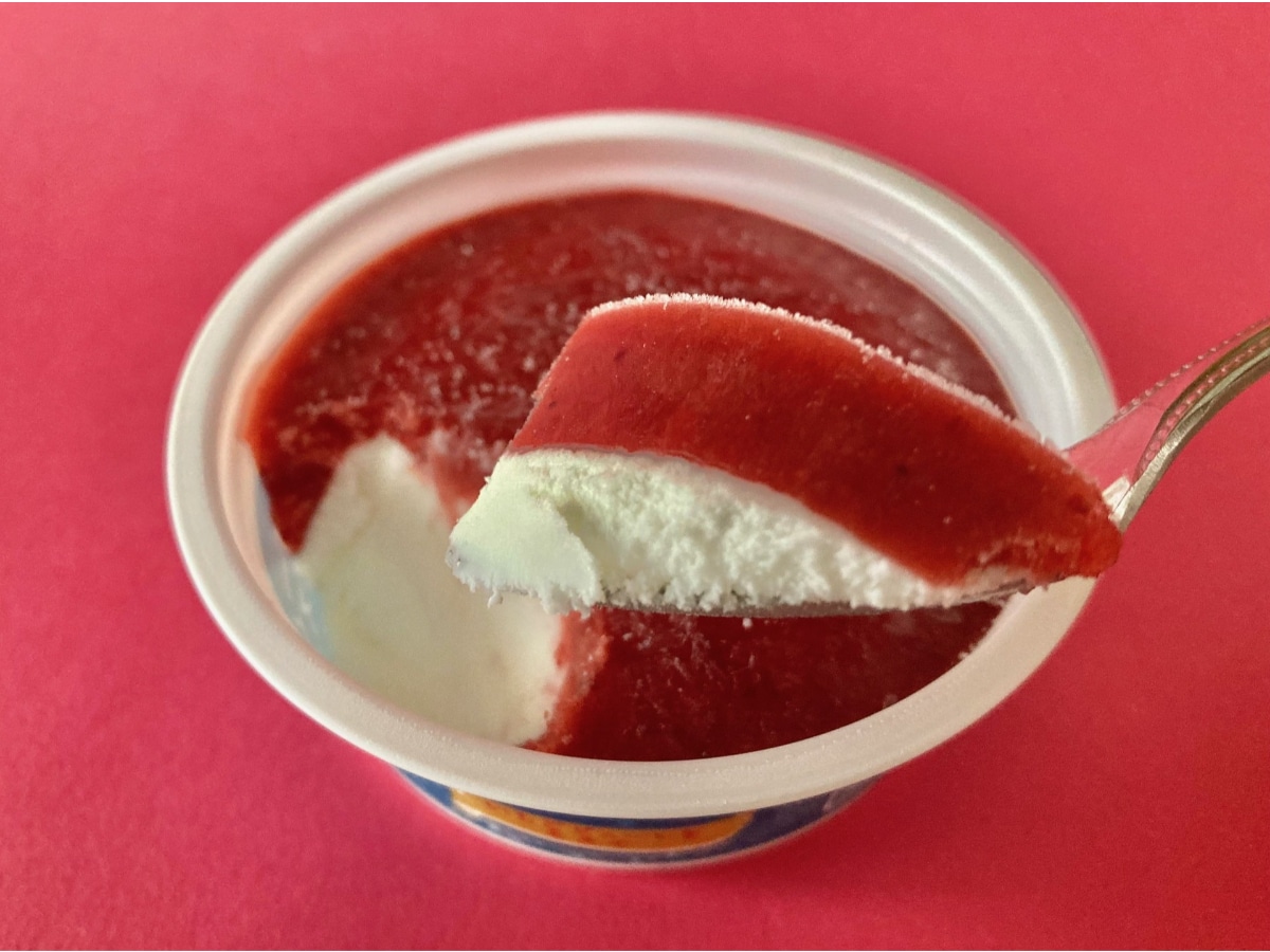 スプーンですくってみました。いちごピューレの割合が想像以上で嬉しい!