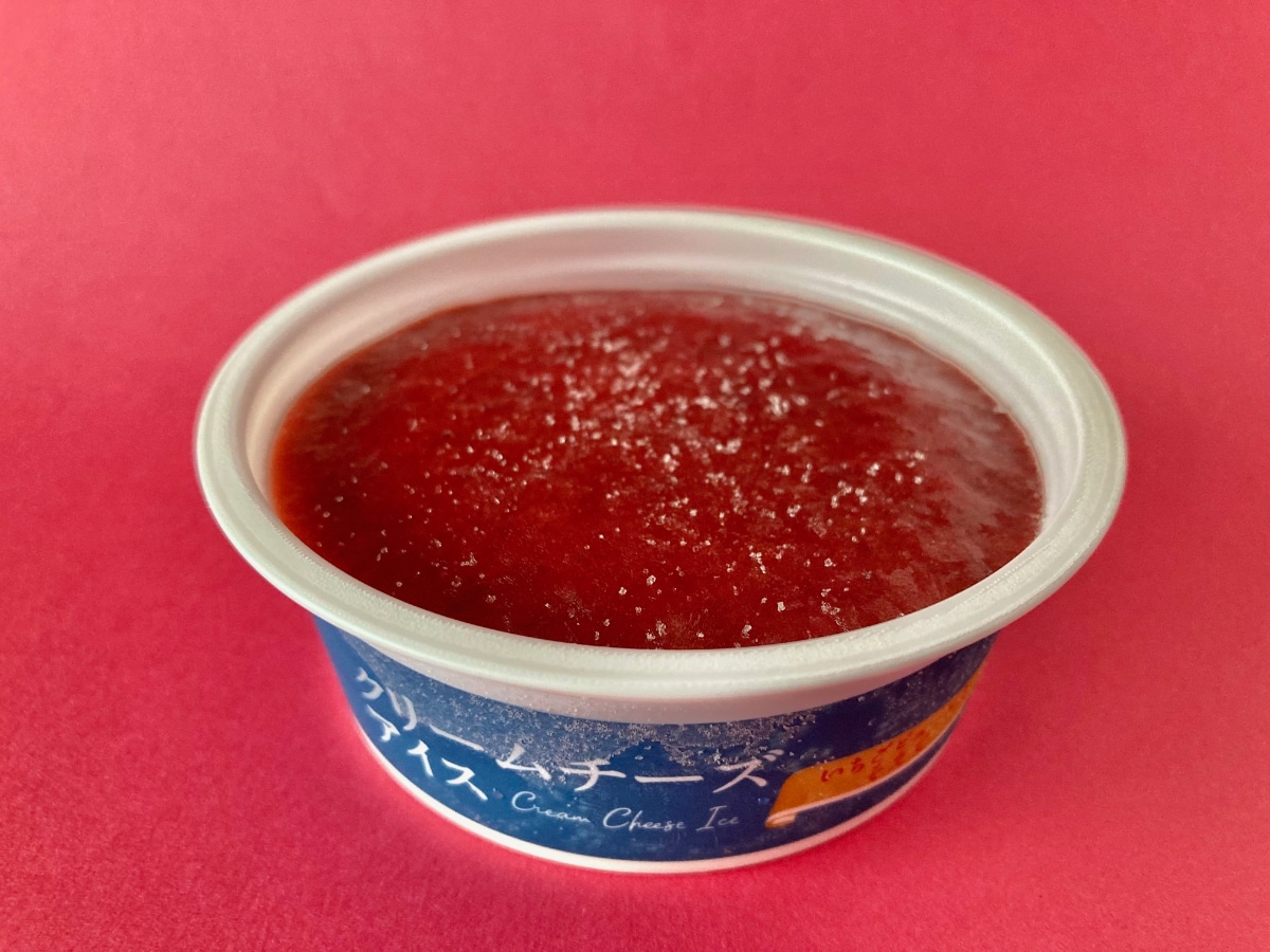 いちごピューレをのせたクリームチーズアイス。価格は税込258円。