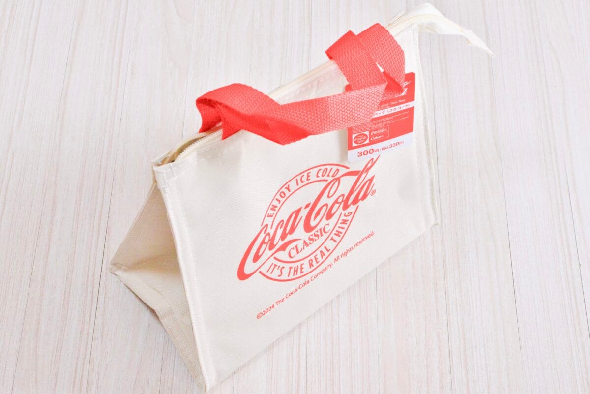 ダイソーで大人気のコカ・コーラシリーズ。巾着やフォトフレーム、プレートやテーブルクロス、カトラリーなど数多くのアイテムが展開されています。そんなコカ・コーラシリーズの「マチ広ランチバッグ(コカ・コーラ)」です。