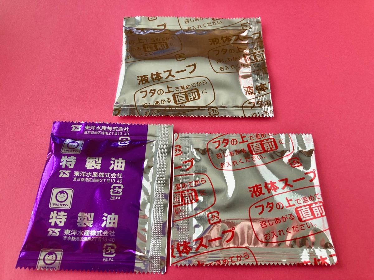 液体スープの袋が2つ、特製油の袋が1つ入っていました。