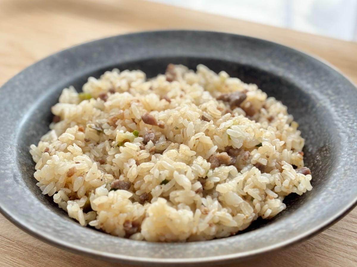 「牛たん炭焼 利久」監修。牛だしをきかせたごはんに、粗切りにした牛たんと青唐辛子を加えたまぜごはんです。青唐辛子のピリッとした辛さがアクセントになっています。