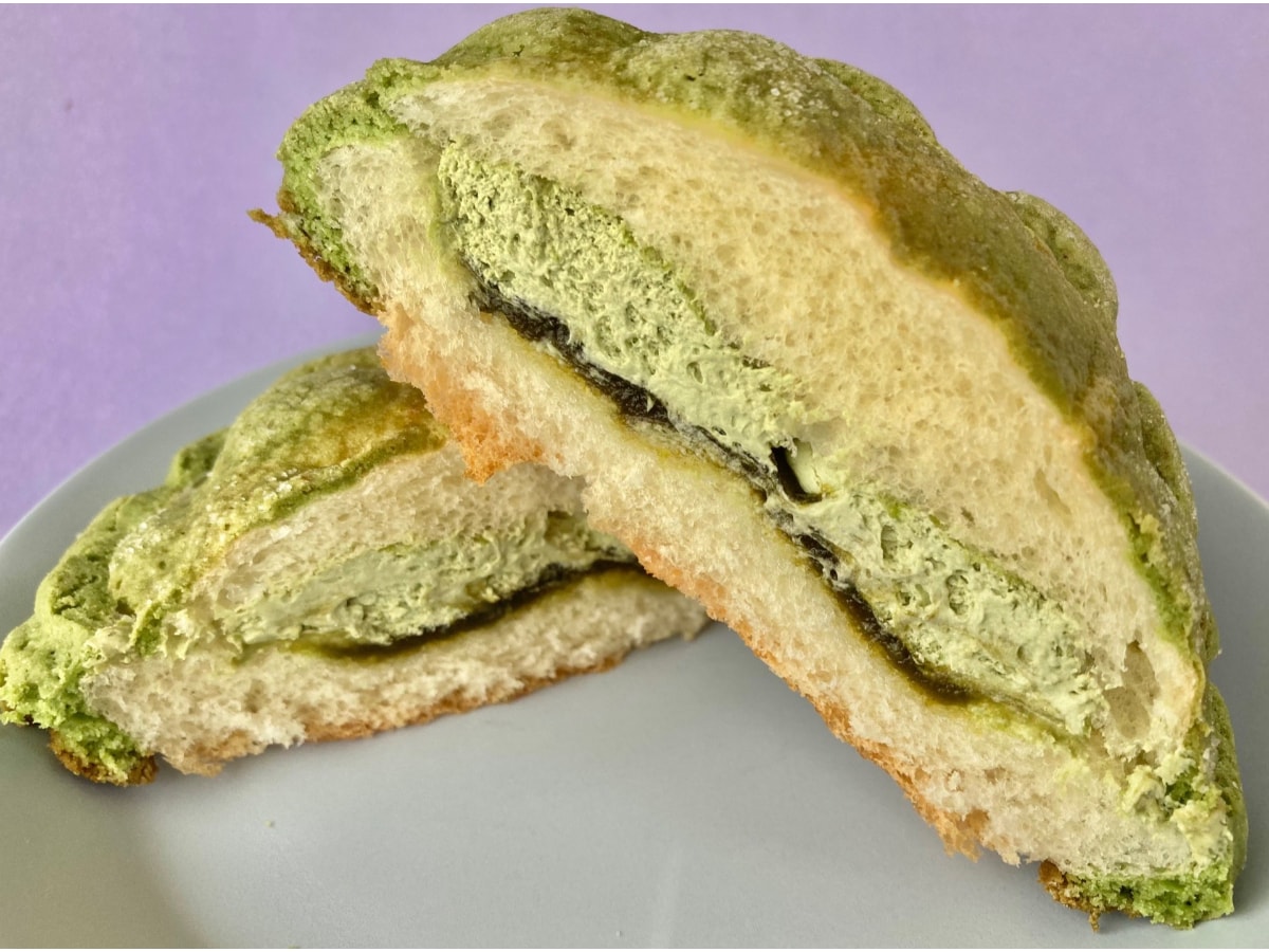 質感はメロンパンそのものですが、抹茶の香りが広がります。