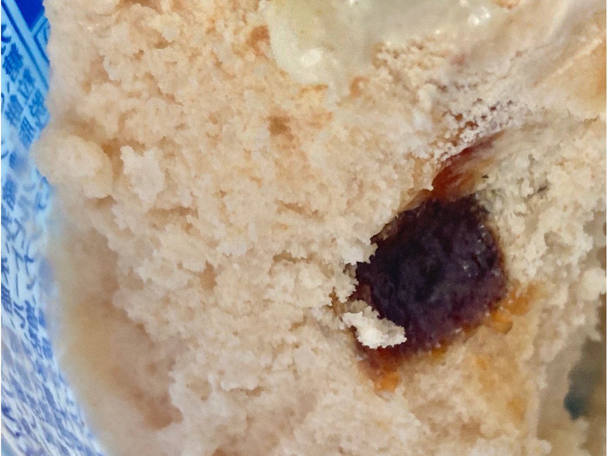 そして、食べ進めると、かき氷のなかから黒蜜が出てきました。