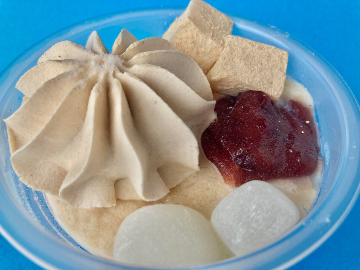 きな粉の香りがほんのり香ります。和スイーツがたくさんトッピングされていて、食べるのがとっても楽しみですね!