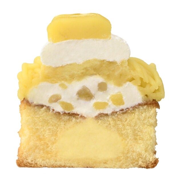 渋皮栗の上品でコク深い味わいと、クリーム、スポンジのハーモニーが楽しめるモンブラン。ふんわり・しっとり焼き上げた口どけのよいスポンジの中に、熊本県産蒸し栗ペーストを使用したなめらかな栗カスタードクリームを入れた。その上に、渋皮栗の粒入りチーズクリームを重ね、仕上げに熊本県産蒸し栗ペーストを含む4種のマロンペーストを合わせた渋皮栗あんを絞っている。芳醇さが増し、より渋皮栗のコク深い味わいが楽しめる。