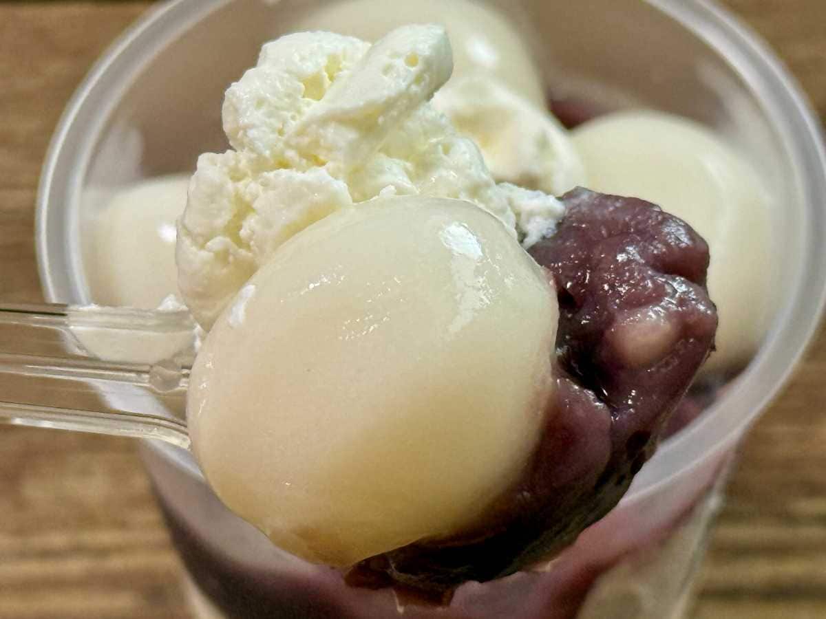 もっちりと弾力のある白玉の食感がたまりません♡硬すぎず、柔らかすぎず、筆者は好み。あんこは思ったより甘さが抑えられていて、上品です。