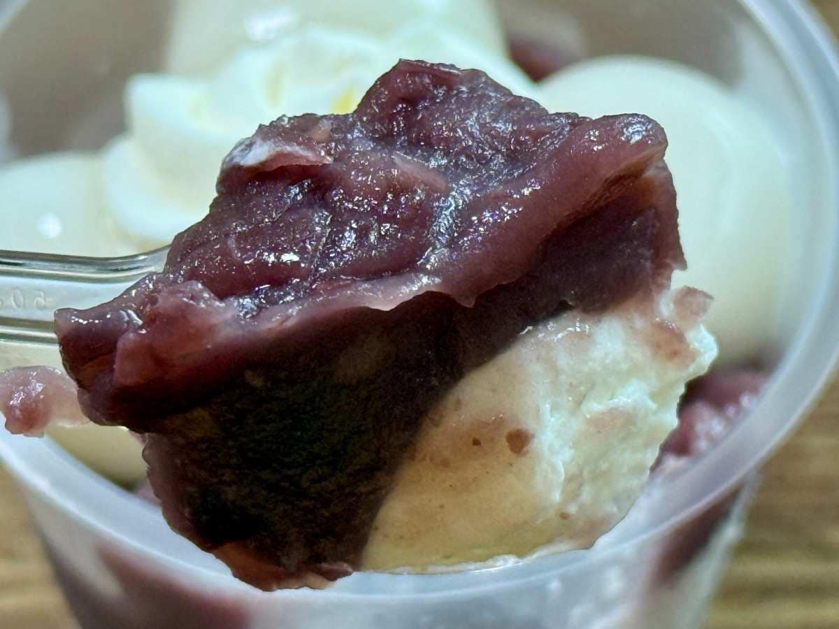 ミルキーでコクのあるミルクムースが特徴の本商品、あんこと白玉の相性が良すぎる……!!ミルクムースが加わることで、より味に深みがでます。美味しい~♡