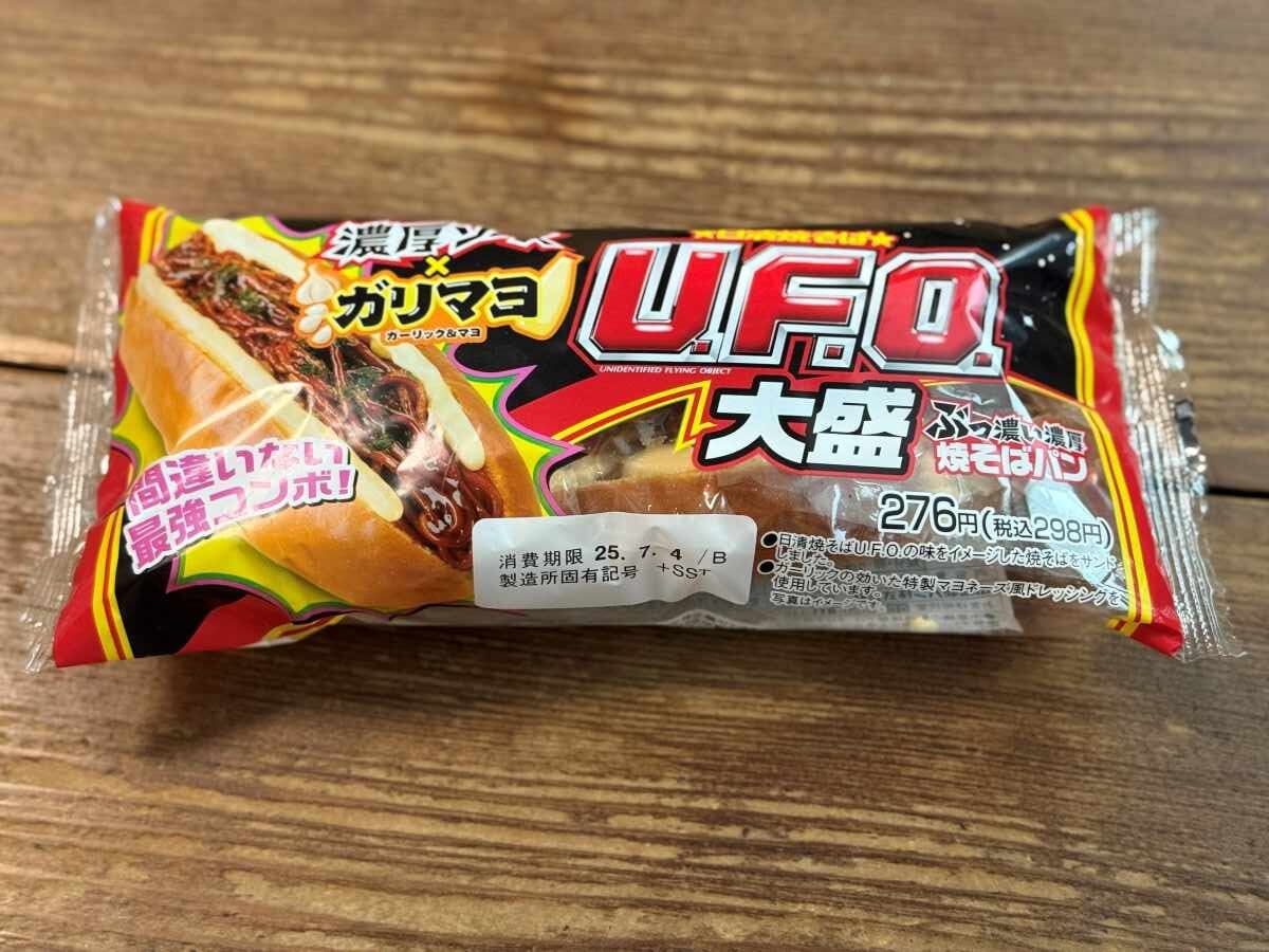 ファミリーマート限定で「U.F.O.ぶっ濃い濃厚大盛焼そばパン(ガリマヨ)」が発売されました。