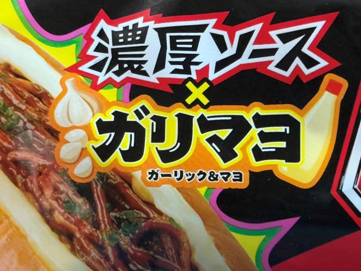 パッケージには「濃厚ソース×ガリマヨ(ガーリックマヨネーズ)」のロゴがどかーんと!