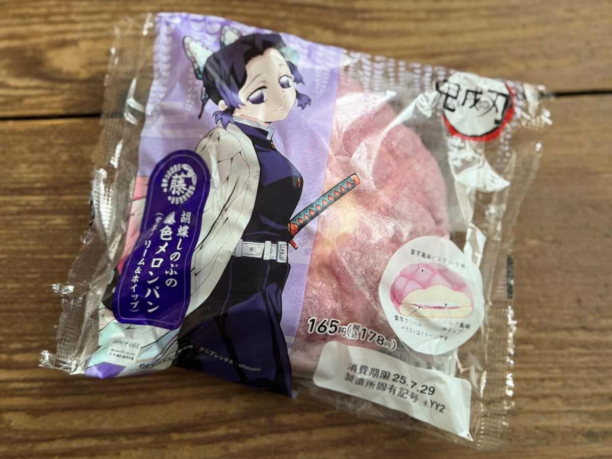 ファミリーマートから数量限定で「胡蝶しのぶの藤色メロンパン(紫芋クリーム&ホイップ)」が登場しました。