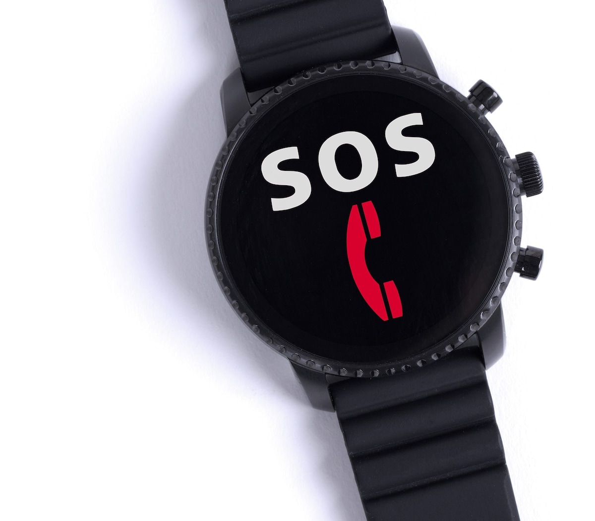 スマートウォッチには、センサーが内蔵されていてユーザーが転倒したとき、転んだ衝撃やその動きを検知してくれる機能があります。検知すると、事前に登録している緊急連絡先に位置情報とともに通知が送信されるので、もしものときも安心です。
