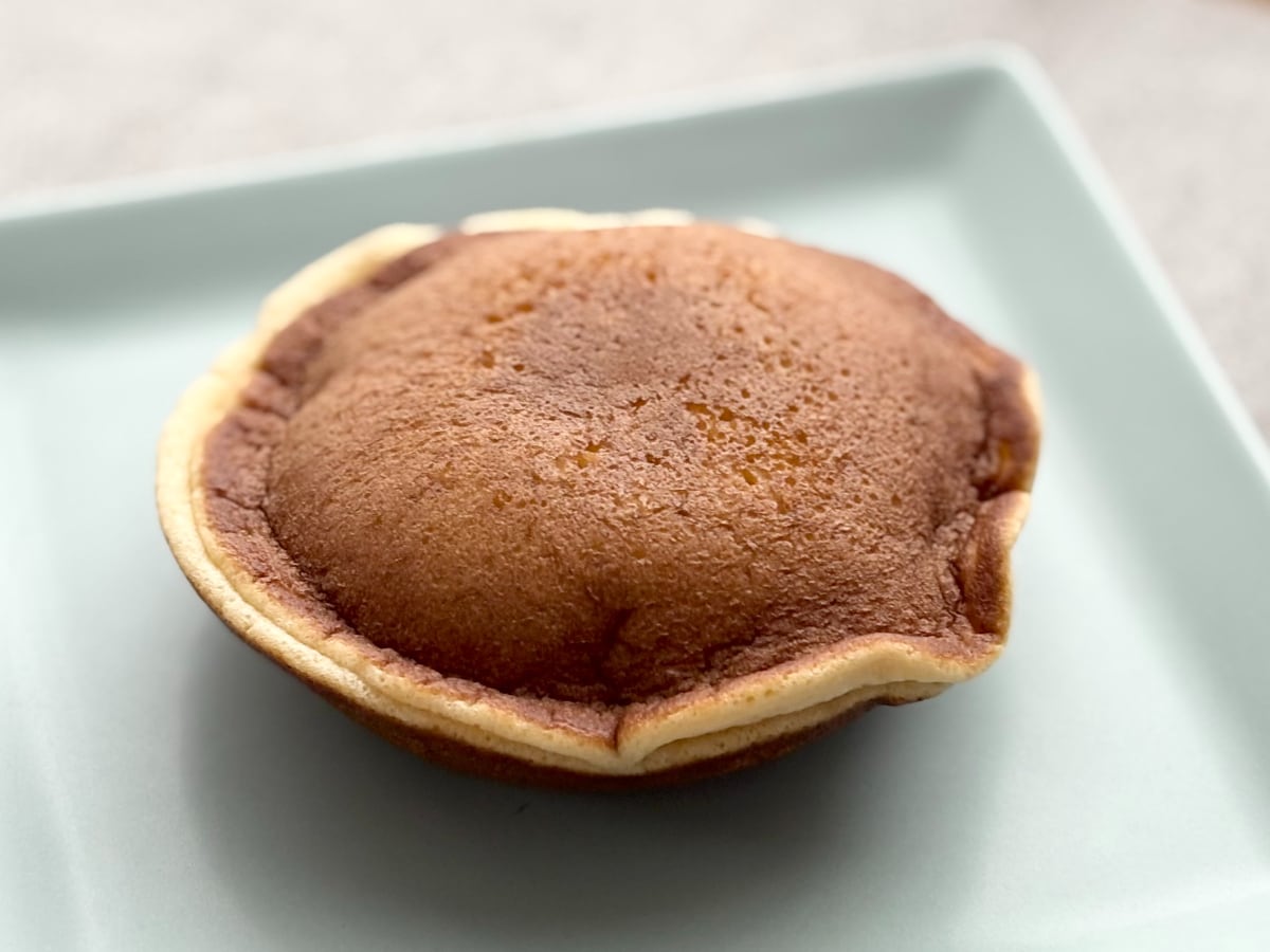 さっそくパッケージを開封しお皿の上へとのせてみます。直径は約10cmほど。端がしっかりとくっついて、中央がぷくっと膨らんだ形はどらもっちならではです。