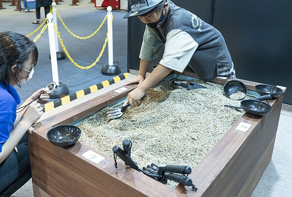 また、実物のアンモナイトの化石を発掘する体験コーナーもあり、発掘した化石を持ち帰ることができる。参加料は1回500円(税込)で、土日祝のみの開催となる。