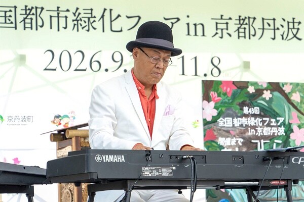 公式テーマ曲「みどりのふるさと」の披露にあたっては、楽曲を制作した作曲家・ピアニストのエイコン・ヒビノさんと、