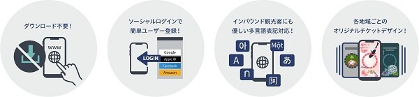 また、事業者側で簡単にチケットを作成できること、QRコード(※)を利用者が読み取るとチケットの利用認証ができることなども強みだ。各WEBアプリやチケットのデザインには、任意の画像や色を設定できる。