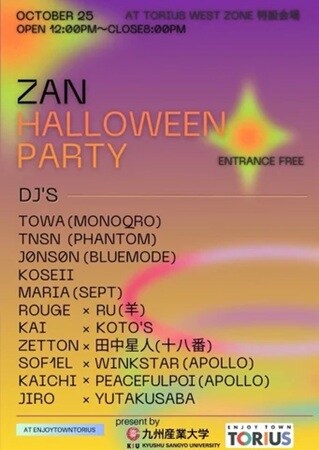福岡県糟屋郡久山町のショッピングセンター「トリアス」にて、キャリアイベント「ZAN ハロウィンパーティー」が10月25日(土)に開催される。