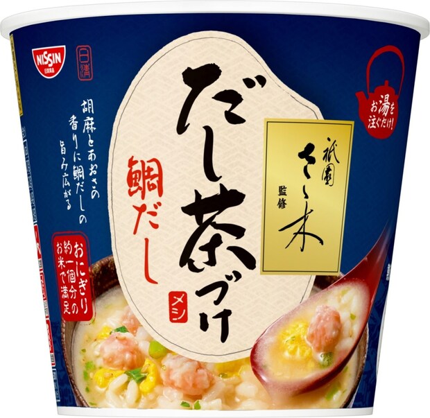 9月15日には京都・衹園の名店「衹園さゝ木」監修の新商品「衹園さゝ木監修 日清だし茶づけ」(税別298円)を発売。フレーバーは「鯛だし」と「明太子」の2種類で、40~50代の男性を主要ターゲットとする。即席ながらも上質な味わいを追求し、おなかに優しい商品であることから、昼食としての利用に加えて夜食や深夜の軽食としての需要も見込まれる。