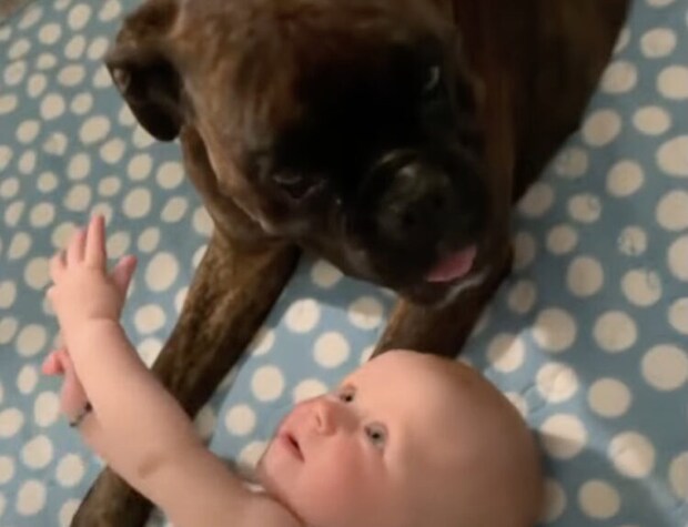 赤ちゃんもすでに犬さんのことが大好き♪