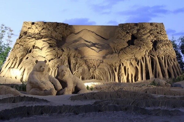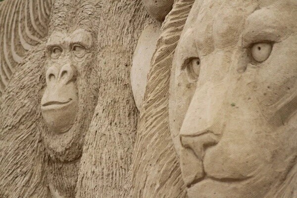 砂像は、驚くほどリアルな砂の肌の質感と臨場感を持っており、時間とともに表情が変化する。
