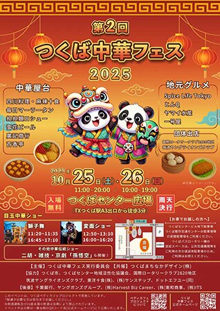 つくば中華フェス実行委員会は、10月25日(土)・26日(日)の2日間、つくば駅前のつくばセンター広場にて、第2回『つくば中華フェス2025』を開催する。