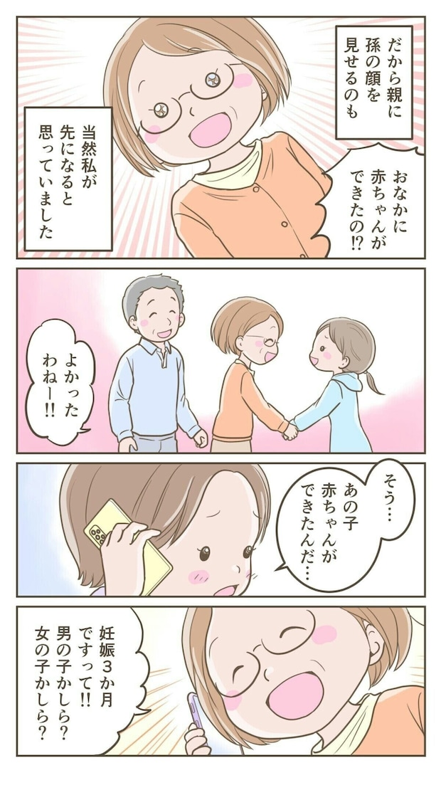 しかし、妊娠は妹のほうが先。妹の妊娠報告に喜んで電話をかけてきた実母。その声を聞きながら、妻は誰の妊娠報告よりつらく感じたと、のちに振り返っています。
