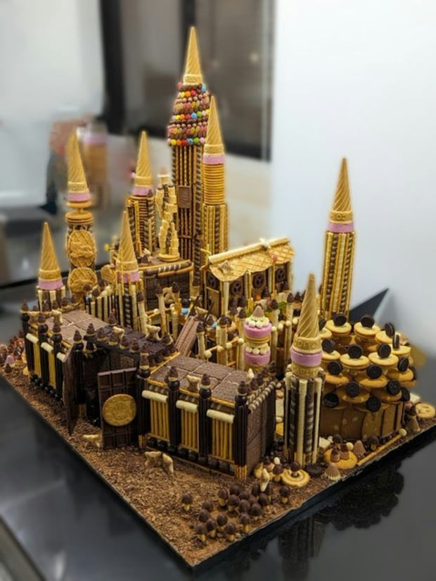 せっせとチョコとクッキーなどお菓子を積み上げ、夢を再現させようと奮闘する姿を想像すると、くすっとしてしまいますね。お菓子の家というと、小さいころは想像するだけでワクワクしたものです。しかし実際に作ると、とても大変な作業だったのですね。食べるのがもったいないくらいの仕上がりです。