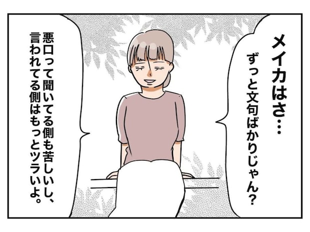 メイカの強い嫉妬が混じった愚痴を、毎回黙って聞いていたすみれでしたが、ここにきて我慢の限界が訪れたようでした。愚痴とはいえ、他愛もない笑って済む話なら良いですが、毎回誰かに対する悪口の場合、聞いている方も本当に気が滅入りますよね。