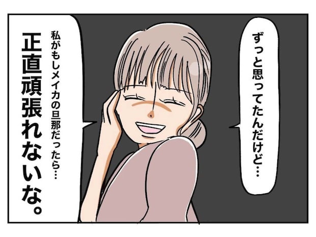 子どもが生まれたころ、メイカもすみれも、お互いに専業主婦で夫の月収は18万円程度でした。つい「生活が苦しい」「夫の給料が安い」と愚痴ってしまうメイカに、すみれは「今だけだから頑張ろう、お互いに夫は頑張っているよ」と声をかけていましたが、メイカの愚痴は折々に夫にも向けられ、メイカ夫婦はいつの間にかギクシャクするように…。