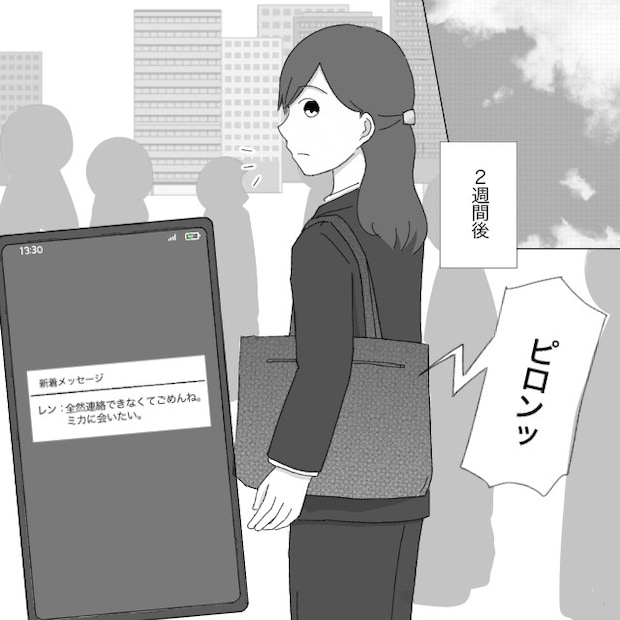 それから連絡がないまま2週間が経ちました。仕事中にレンから「全然連絡できなくてごめんね。ミカに会いたい」とメッセージが届きました。