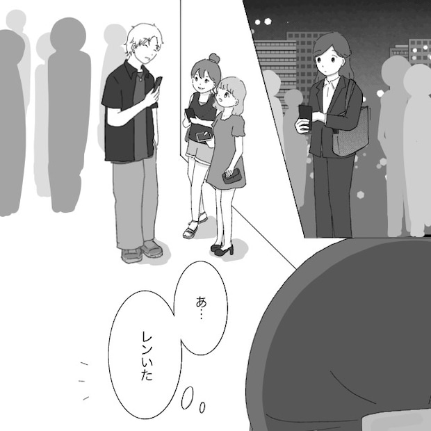 レンさんからミカさんに連絡がくるのは数週間に一度くらいになっていました。前回会ってから2週間後、レンさんから会いたいと連絡が来たミカさんが「仕事で遅くなる」と伝えると、「連絡できなかったから怒ってる?ミカも前の彼女と同じでオレのことイヤになるよね」とレンさんから落ち込んだ様子の返信がきてミカさんは慌てて否定。ミカさんの仕事が終わってから夜ご飯を食べに行く約束をしました。仕事を終えたミカさんが待ち合わせの駅に行くと、知らない女の子2人と楽しそうに話しているレンさんを見つけました。声をかけようとしたミカさんでしたが、レンさんが女の子を遊びに誘っているのが聞こえて思わず言葉を飲み込みました。