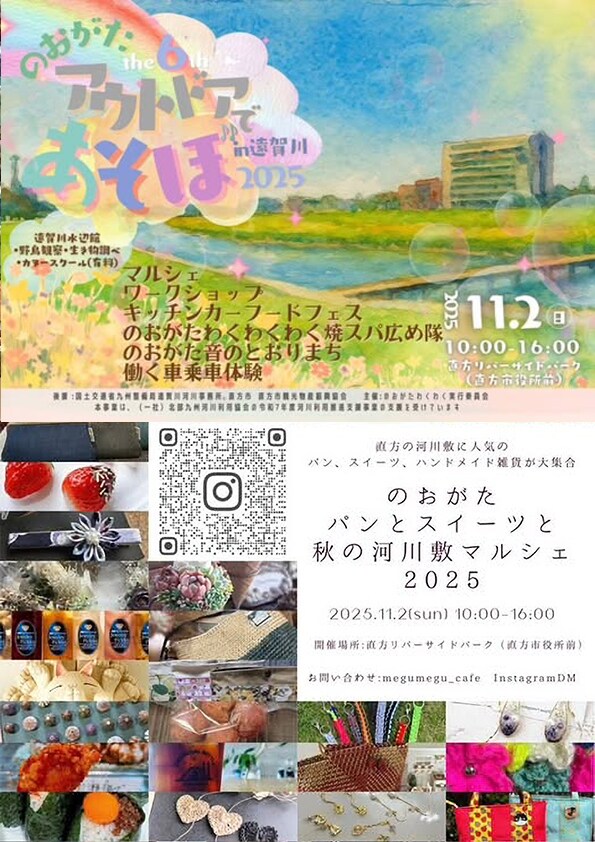 The post 【直方】11月2日(日)、直方リバーサイドパークで「のおがたアウトドアであそぼ♪ in 遠賀川 & のおがたパンとスイーツと秋の河川敷マルシェ」が開催されます! first appeared on 筑豊情報マガジンWING.