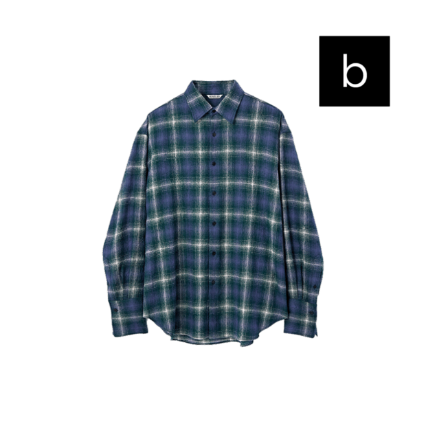 オーセンティックなチェックシャツは、あえて大きめを選び、ズルッと着るのがオススメ。ウール100%だから、軽羽織りとしても活躍してくれそう。¥52,800(オーラリー)