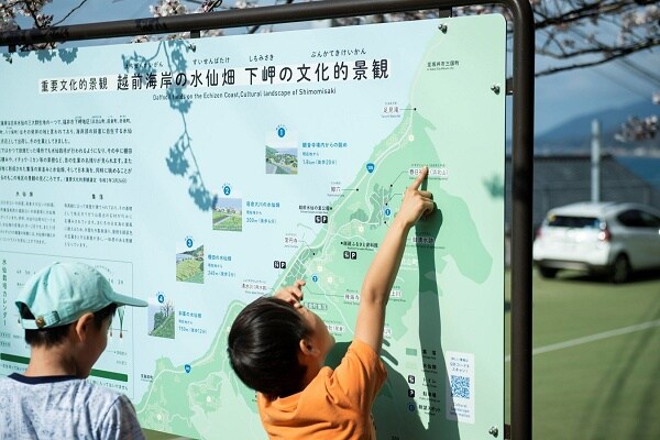 また、越前海岸沿いの水仙畑の景観が、2021年に国の重要文化的景観に選定されたことを契機に行政と連携。地域の歴史や文化を伝えるガイドマップや、地域内の案内看板を制作し、文化的景観への理解と共感の輪を広げているという。
