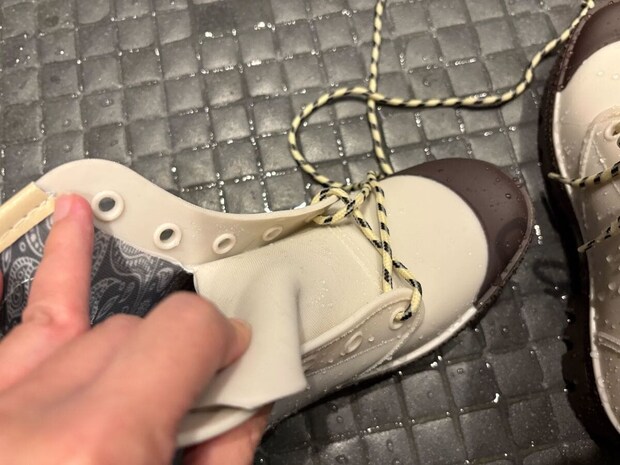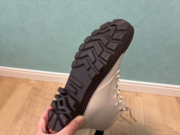 「濡れた路面、タイル床、油が含まれた場所などでは、滑って転倒する恐れがありますので十分注意して下さい。」と注意書きがありましたが、筆者は実際雨の日に履いて過ごしても、滑りそうになることはありませんでした。