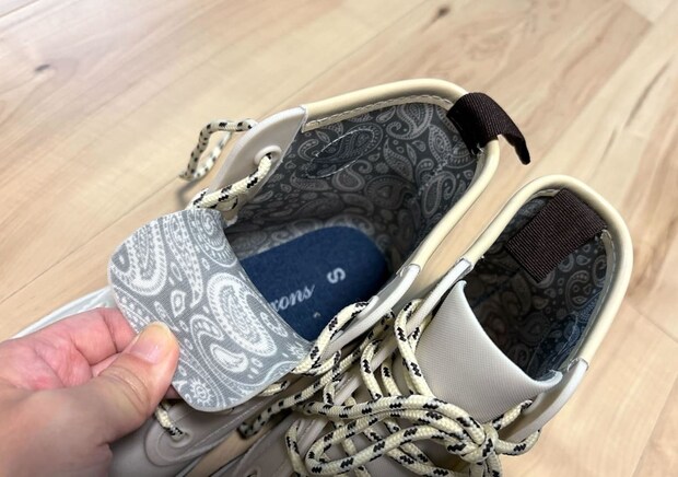 シンプルなブーツのような靴紐タイプですが、いちいち靴紐を外さなくても着脱は可能でした。
