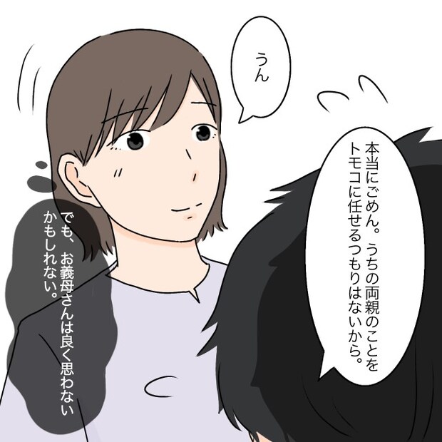 「本当にごめん。うちの両親のことをトモコに任せるつもりはないから」夫の言葉に「うん」と頷いたものの、「でも、お義母さんは良く思わないかもしれない」と心の中で考えていました。