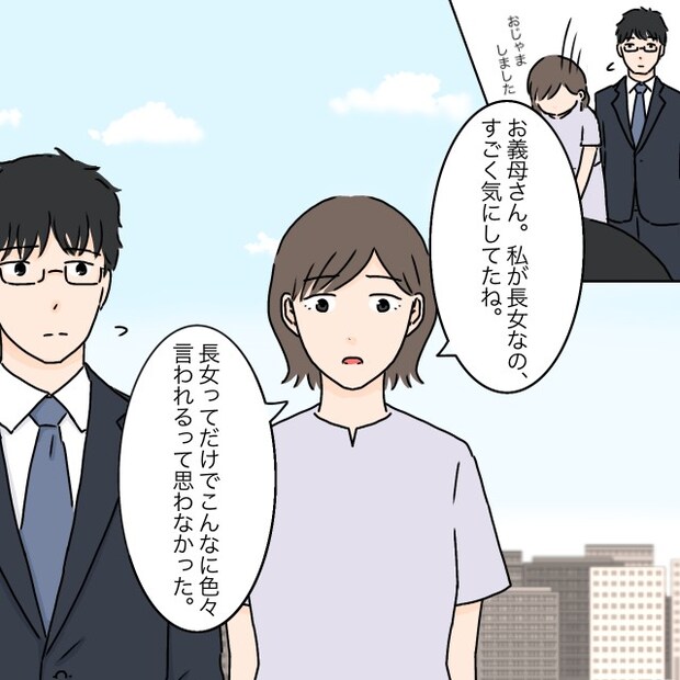 昔から私の事を気に入らなかったと、結婚の挨拶をしに行った時のことを思い出すと、兄弟はいるのかと聞かれた後、長女だと知り、両親の介護についてなどをしつこく聞く義母。怒った夫が反論するも、「長男の嫁として自覚してね」と義母は開き直っていたのでした。