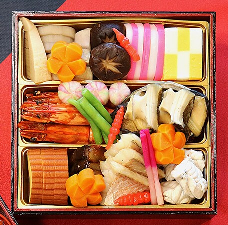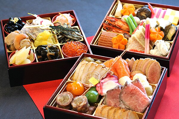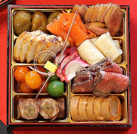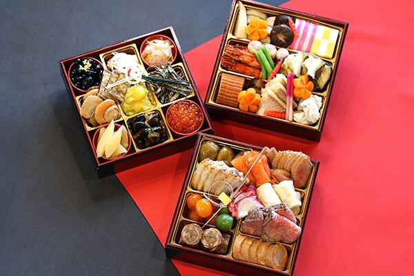 料理長が厳選した旬の素材と、伝統の技を尽くした一品一品に無病息災、子孫繫栄、五穀豊穣といった願いを込め、丹精込めて作り上げている。家族が集まる新年のお祝いの席に、新春の訪れを華やかな料理で彩るとしている。