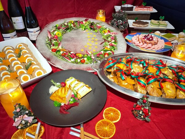 「クリスマスバイキング」では、クリスマスローストチキンやサーモンパイ、聖なる日のChristmasリースなど、クリスマス限定メニューをラインアップ。船内にて注文できるフリードリンクメニューも充実しており、家族や友人と賑やかにクリスマスを祝いたい人におすすめだ。