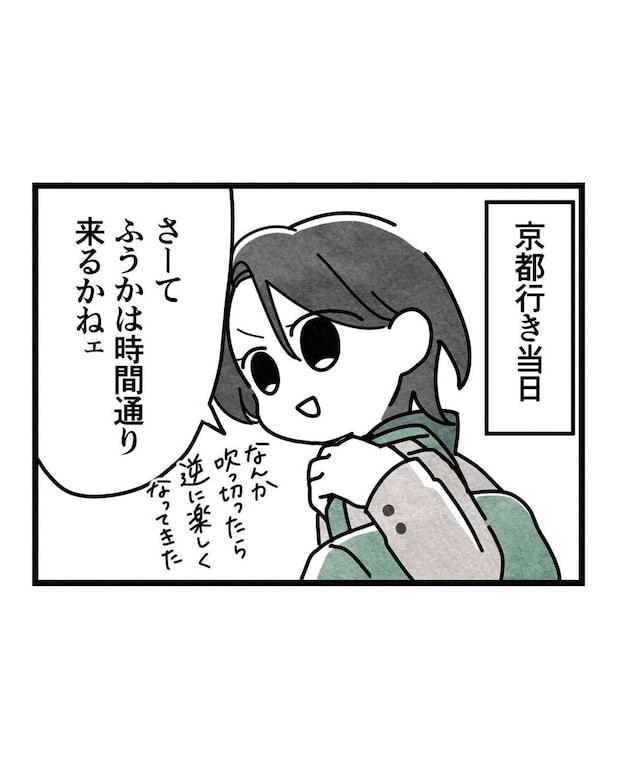 京都旅行当日。ふうかさんは時間通り来るのか、待っているさほさん。吹っ切ったら逆に楽しく感じられたそうです。