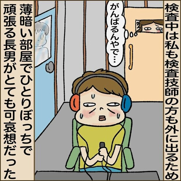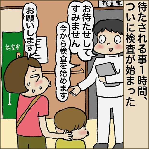 紹介状を持って大学病院を訪れた忍者ママさんと長男。1時間待ちようやく検査が始まりました。検査結果を見た医師からは右耳は完全に聞こえていないこと、これから先も聴こえるようにはならないだろうと言われます。