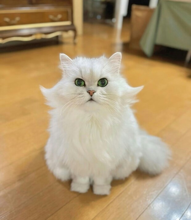 ご紹介するのはふわも(@fuwamopurimo)さんによるとってもキュートな猫のお写真です。長毛種の猫ちゃんは寝ぐせで毛の形が変わることもあります。ただ、今回はしっかりと整えられたことでとっても高貴な姿の猫ちゃんになったようで…?