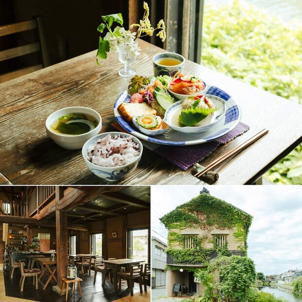 地元の人々も集う、八幡堀のほとりに佇む土蔵を活用したカフェ。穏やかな空気に満ちた空間で、地元の野菜を使用したランチプレートや、豆花、季節のタルトなどのスイーツが味わえる。紅茶、中国茶、スパイスティーといったティーメニューも豊富に揃うから、ほっと和めるひと休みに。