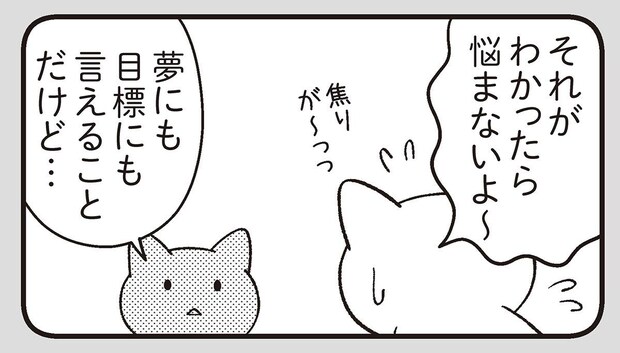 恋するとき、「今から恋をしなくちゃ」って始まることは少ないと思います。突然、落ちるんです。そして落ちてしまったら、できることは、その恋を成就するための努力くらいです。例えば、私は作家を生業にしてますが、別に「作家になるために描かなきゃ」と思って始めたわけではありません。「描くのが好きだから作家になりたい」という順序が正解です。正直なところ「始めなければ」と考え込むほどの「義務感」を感じるためには、「よほどの理由」が必要なんです。でも、その「何か」さえわからないと、何に対しての義務?という感じで、頑張る理由もなしにモチベーションは上がらないし、空回りして疲れるだけなんです。それよりは「何か」という恋に落ちたときのために、自分を磨いたり知見を広めたりして、気力体力を温存したほうが、いざ「落ちた」ときに動きやすいと思います。